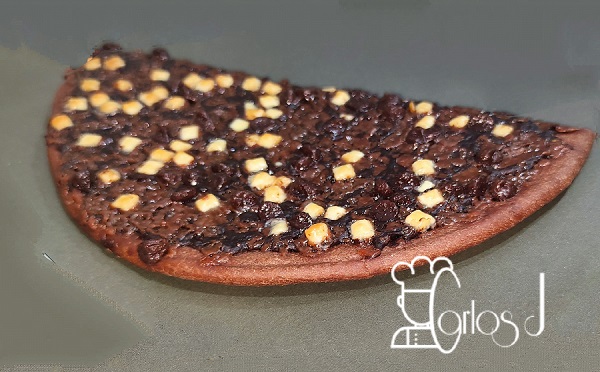 PIZZA DE CREMA DE CACAO CON TOPPING DE CHOCOLATE EN THERMOMIX. BADAJOZ, VILLANUEVA DE LA SERENA, DON BENITO, MERIDA