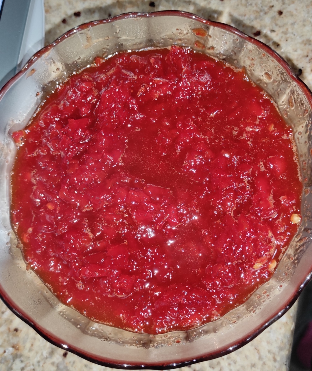 -Bajar de las paredes del vaso los pimientos que puedan haberse adherido, nos podemos ayudar con la espátula.