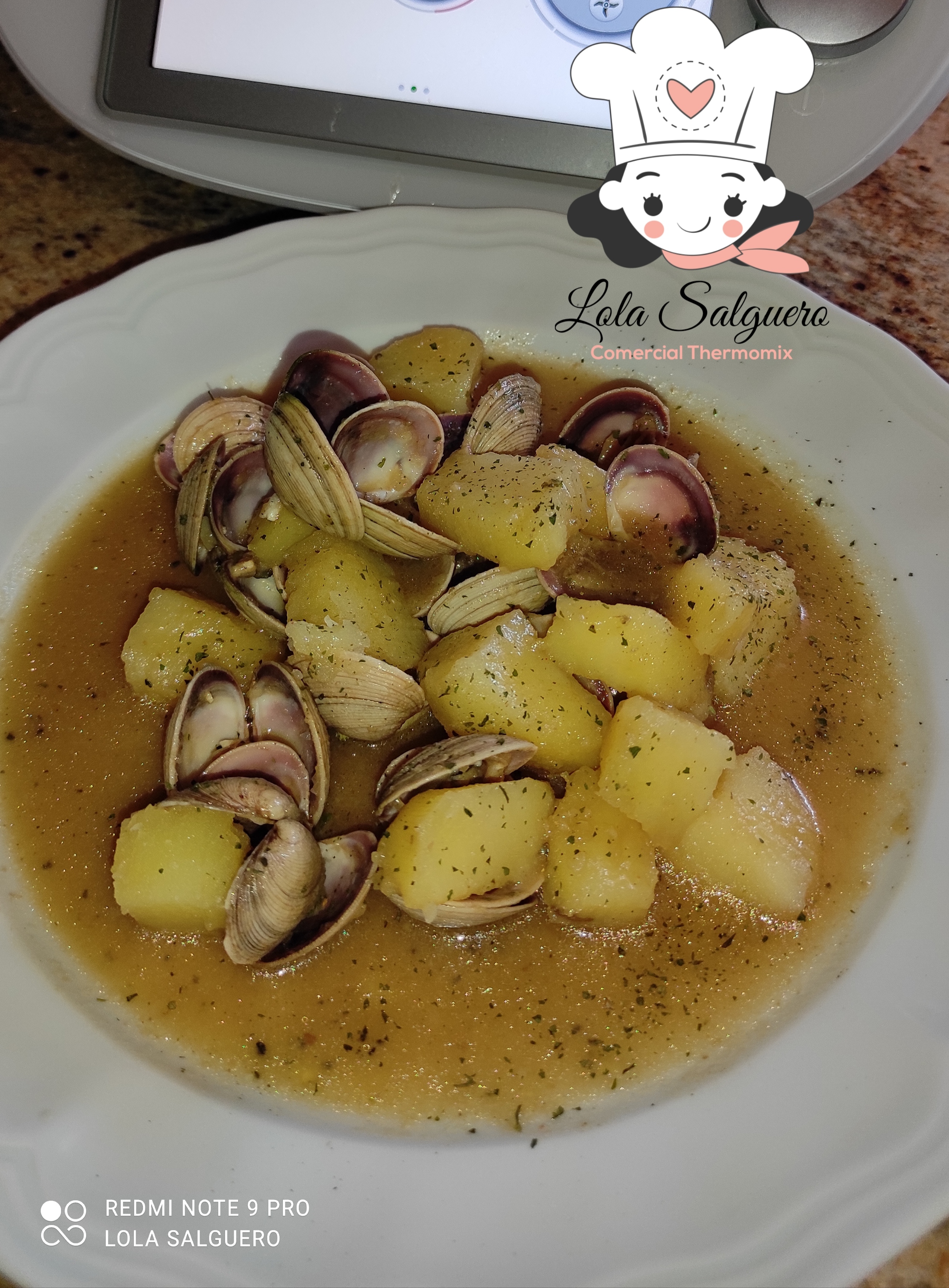 PATATAS CON ALMEJAS EN SALSA VERDE Y GAMBONES A LA SAL