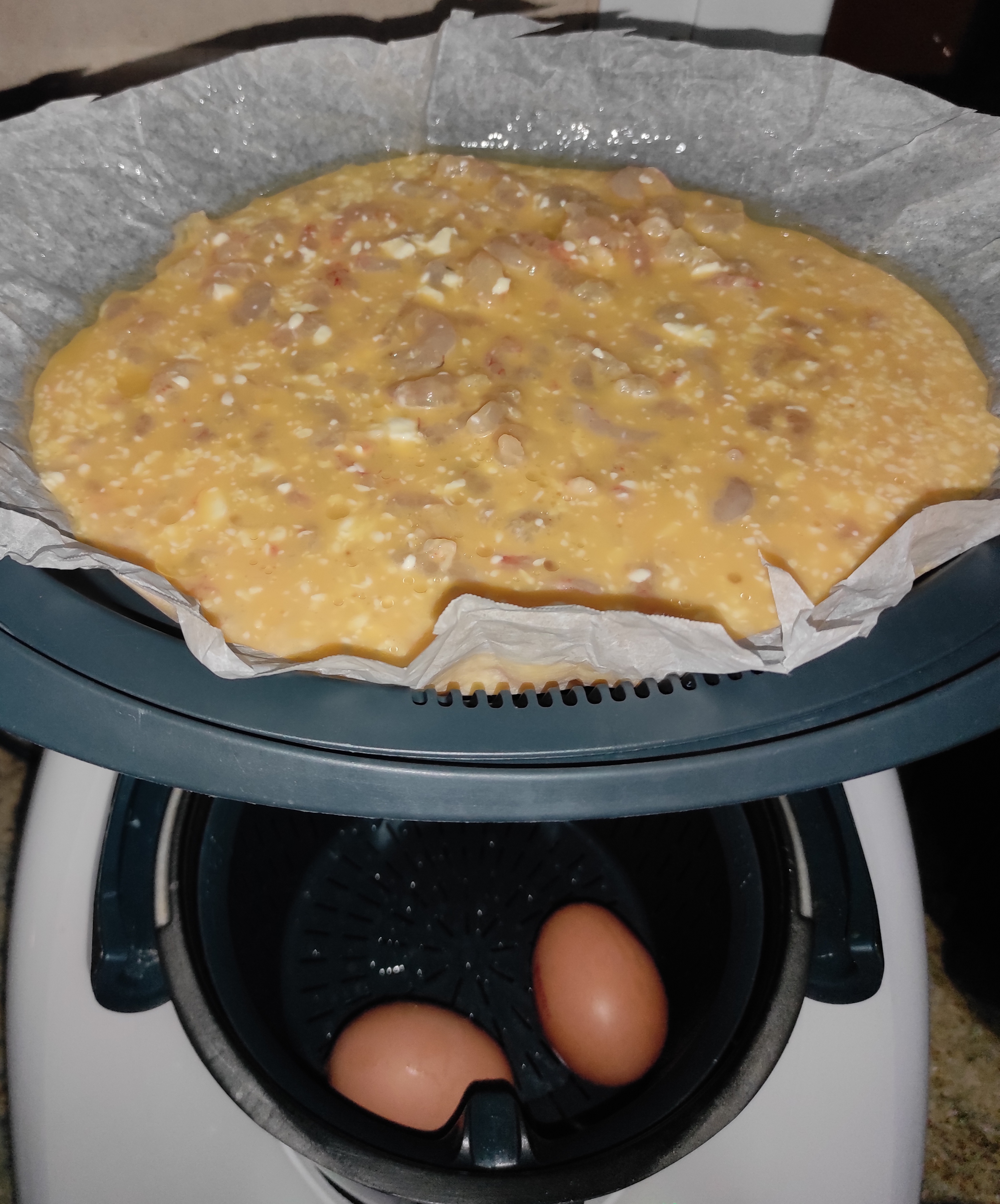 -A continuación echamos la mezcla del vaso en nuestro varoma. cerramos y reservamos.