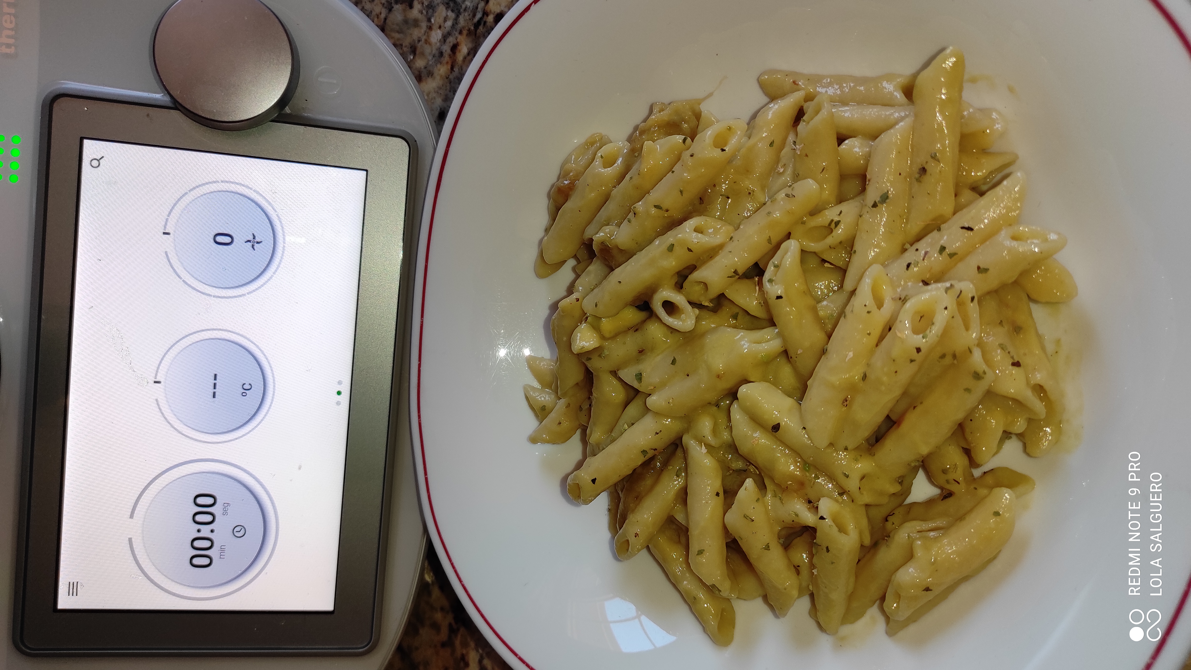 -Cuando ya tenemos el agua a 100º introducimos la pasta en el vaso, programamos tiempo indicado del paquete / 100º /vel. cuchara giro inverso ( podéis poner la mariposa)