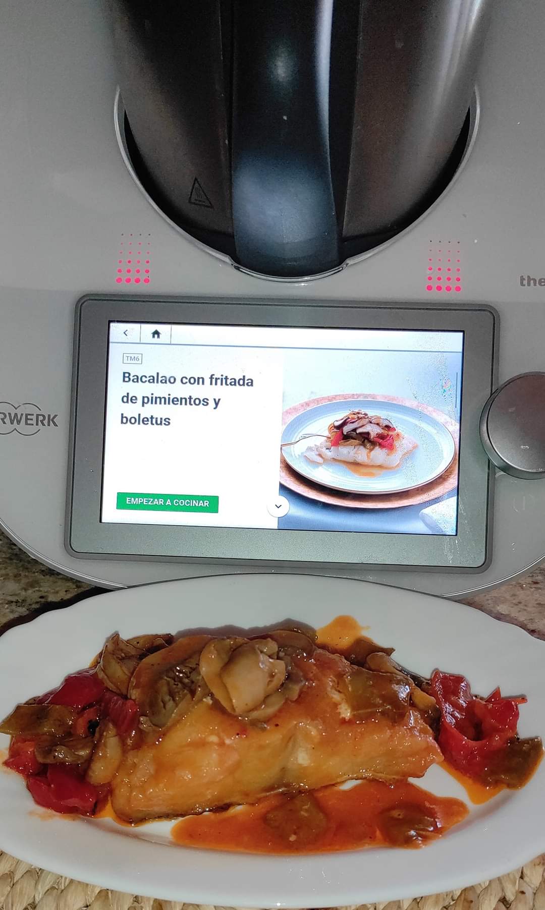 BACALAO CON FRITADA DE PIMIENTOS Y BOLETUS CON THERMOMIX EN RIBERA DEL FRESNO