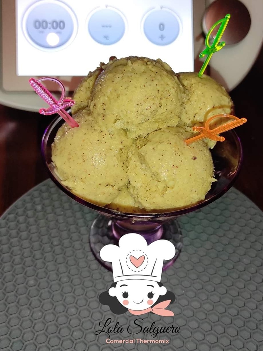 -Después de este paso hay dos opciones, puedes verter esta mezcla en una heladora y así hacer el helado thermomix de kiwi de forma inmediata o puedes ponerla en cubiteras y cuando vayas a utilizarlo triturarlo con la thermomix hasta deshacer completamente los cubitos y obtener un helado cremoso.