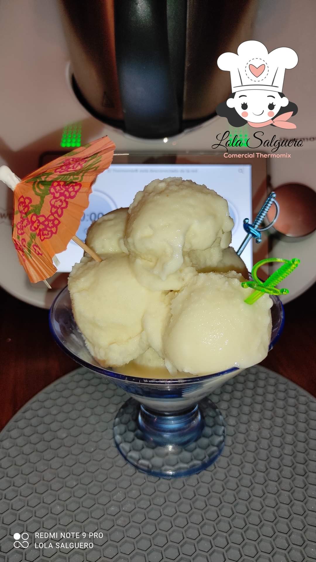 -Servimos inmediatamente utilizando una cuchara para hacer bolas de helado o con un par de cucharas soperas.