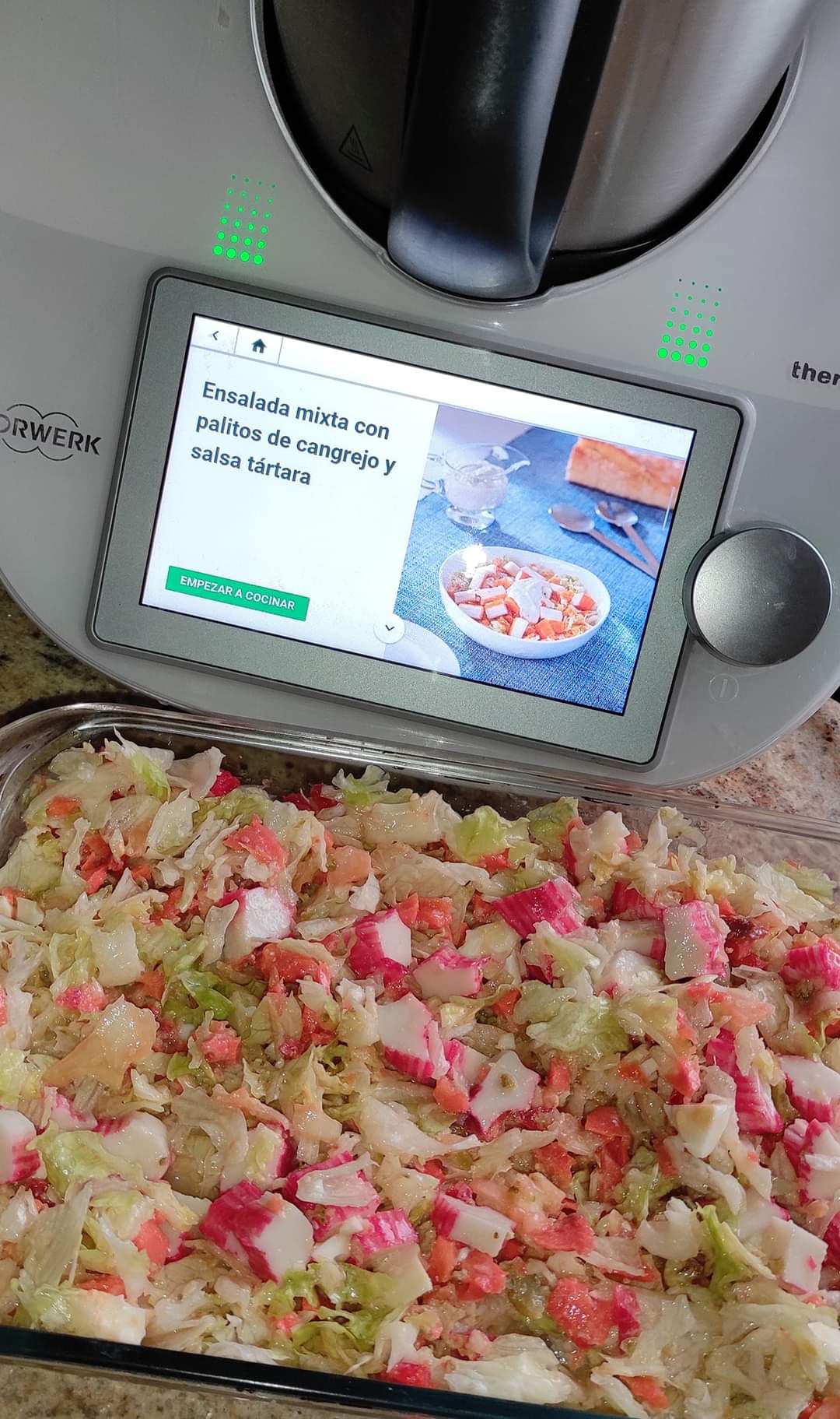 ENSALADA MIXTA CON PALITOS DE CANGREJO Y SALSA TÀRTARA EN THERMOMIX DE RIBERA DEL FRESNO