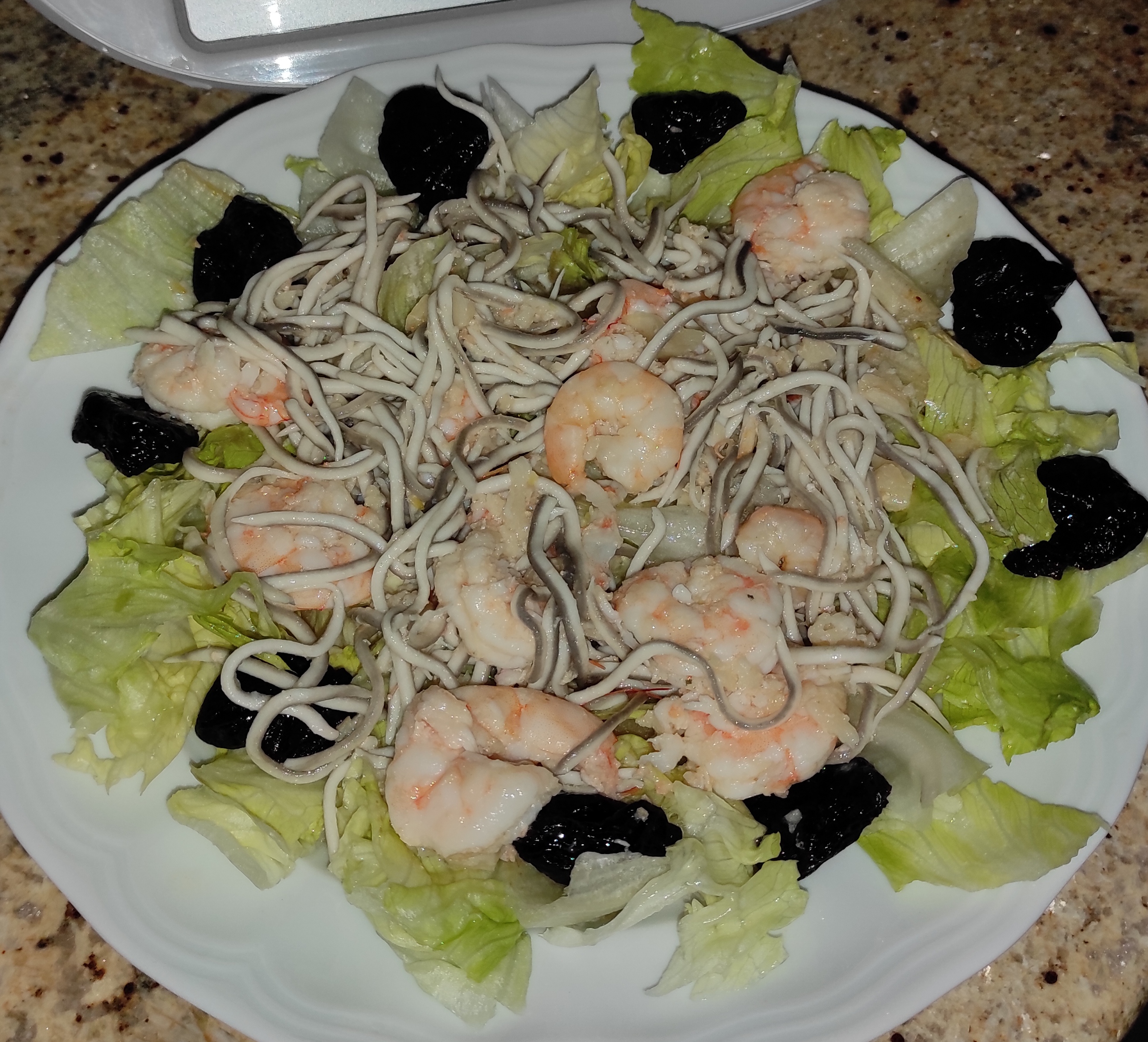 ENSALADA TEMPLADA DE GULAS Y GAMBONES CON THERMOMIX EN RIBERA DEL FRESNO