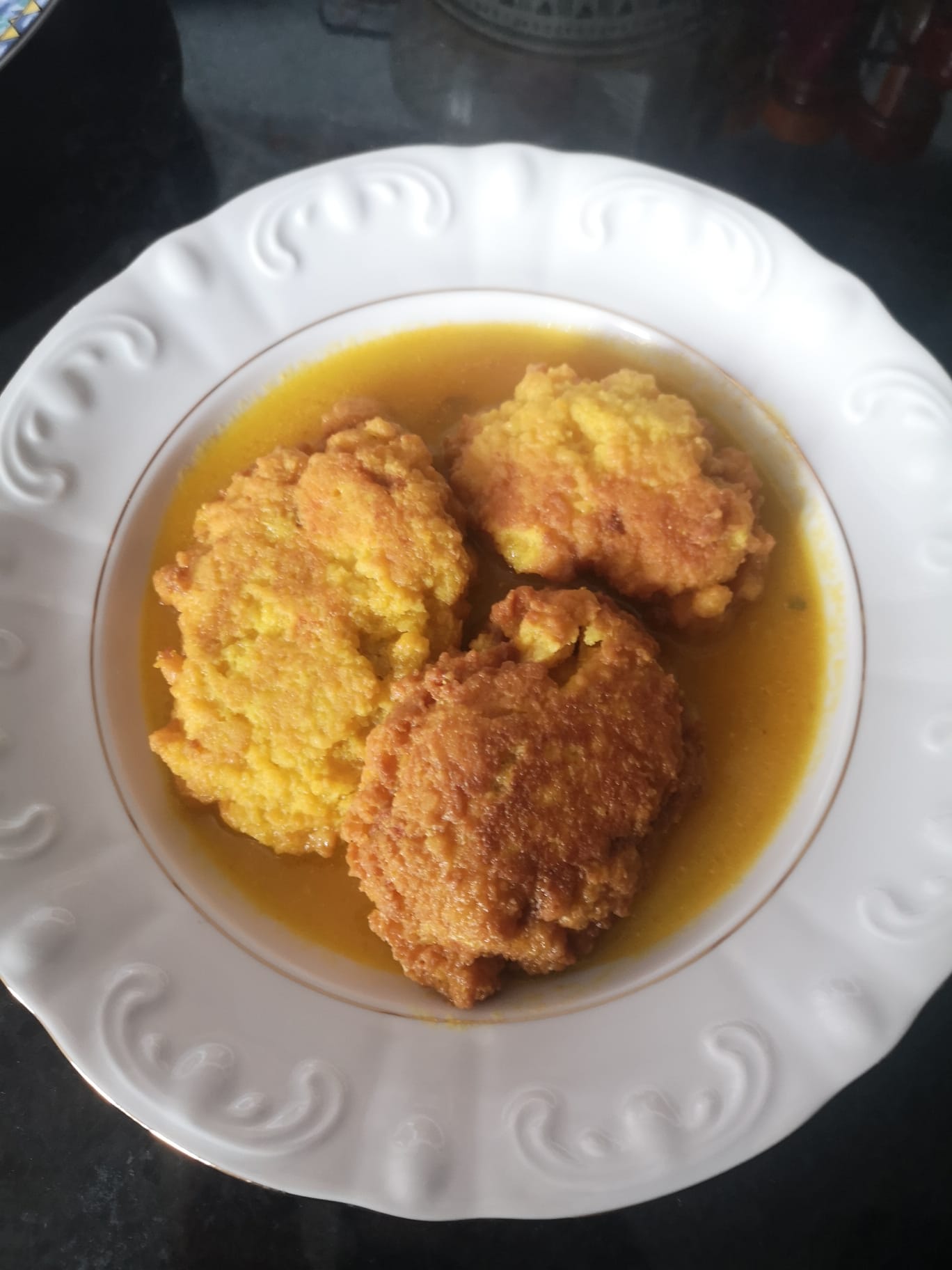 4. Calentar aceite de oliva en una sartén. Con una cuchara vamos cogiendo bolas de la mezcla y fiéndolas a fuego medio. Reservar en un plato con papel absorbente y posteriormente colocarlos en una sopera.