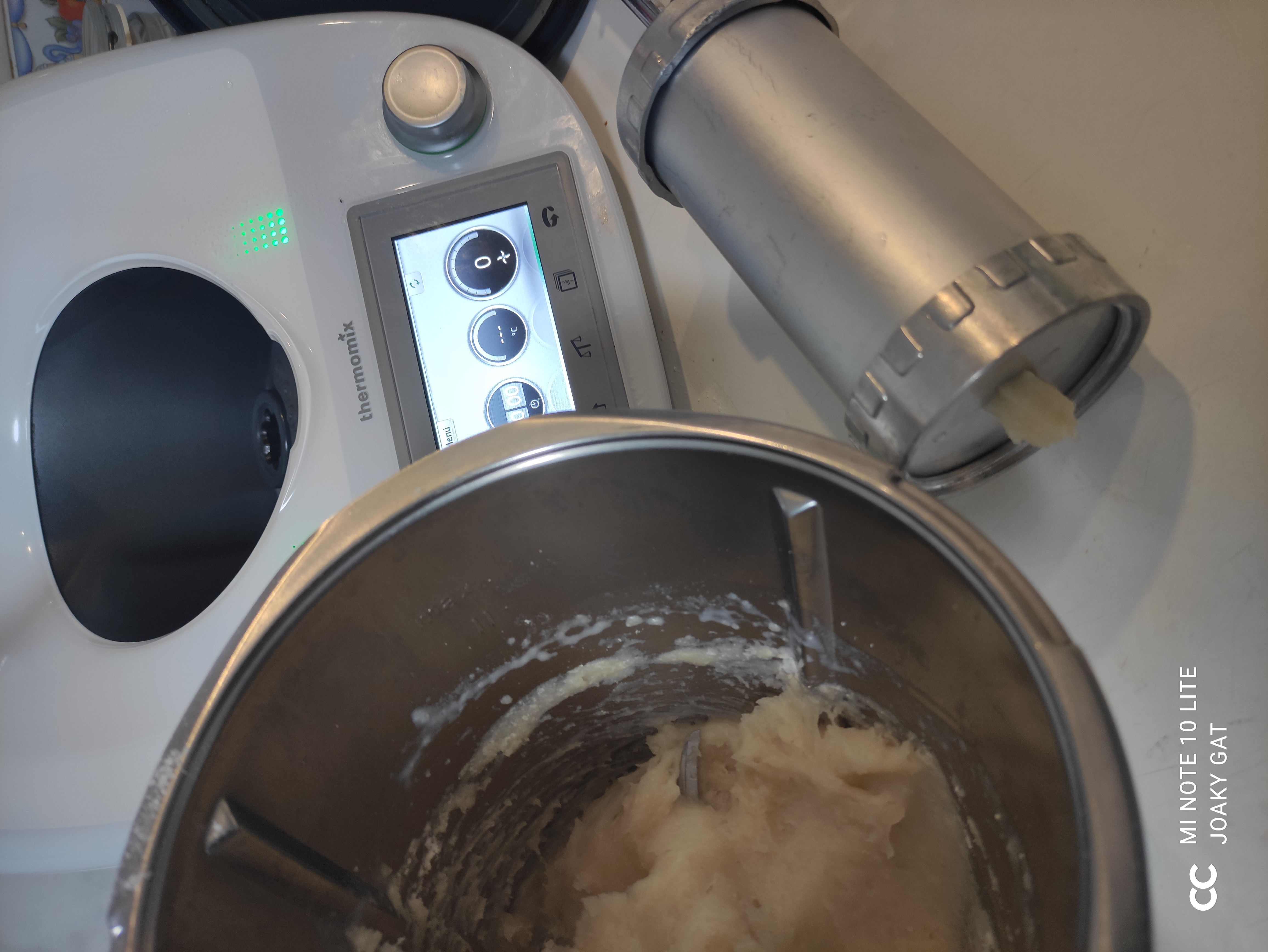 PONER EN EL VASO LOS 200 CC. DE LECHE Y LOS 300 CC. DE AGUA Y LA SAL Y PROGRAMAR 7 MINUTOS A 100 GRADOS Y VELOCIDAD 2.