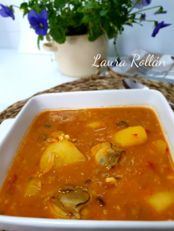 Patatas con almejas y calamares
