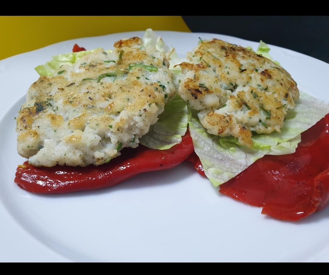 HAMBURGUESAS DE MERLUZA DISOCIADAS CON PIMIENTOS DEL PIQUILLO CON THERMOMIX VILLANUEVA DE LA SERENA-BADAJOZ