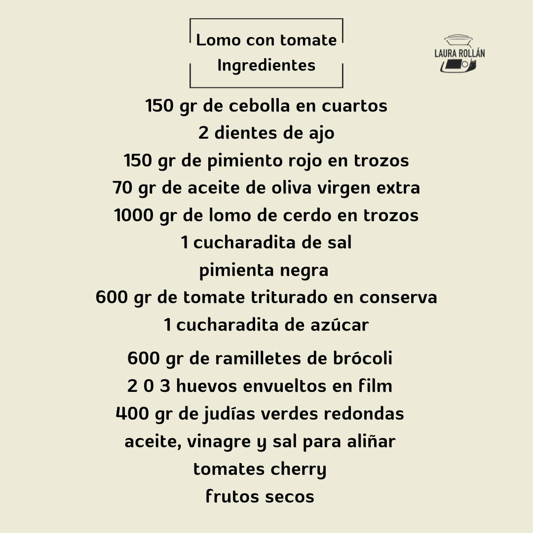 MENÚ COMPLETO: LOMO CON TOMATE, ENSALADA DE JUDÁAS VERDE Y BRÓCOLI AL GUSTO CON THERMOMIX