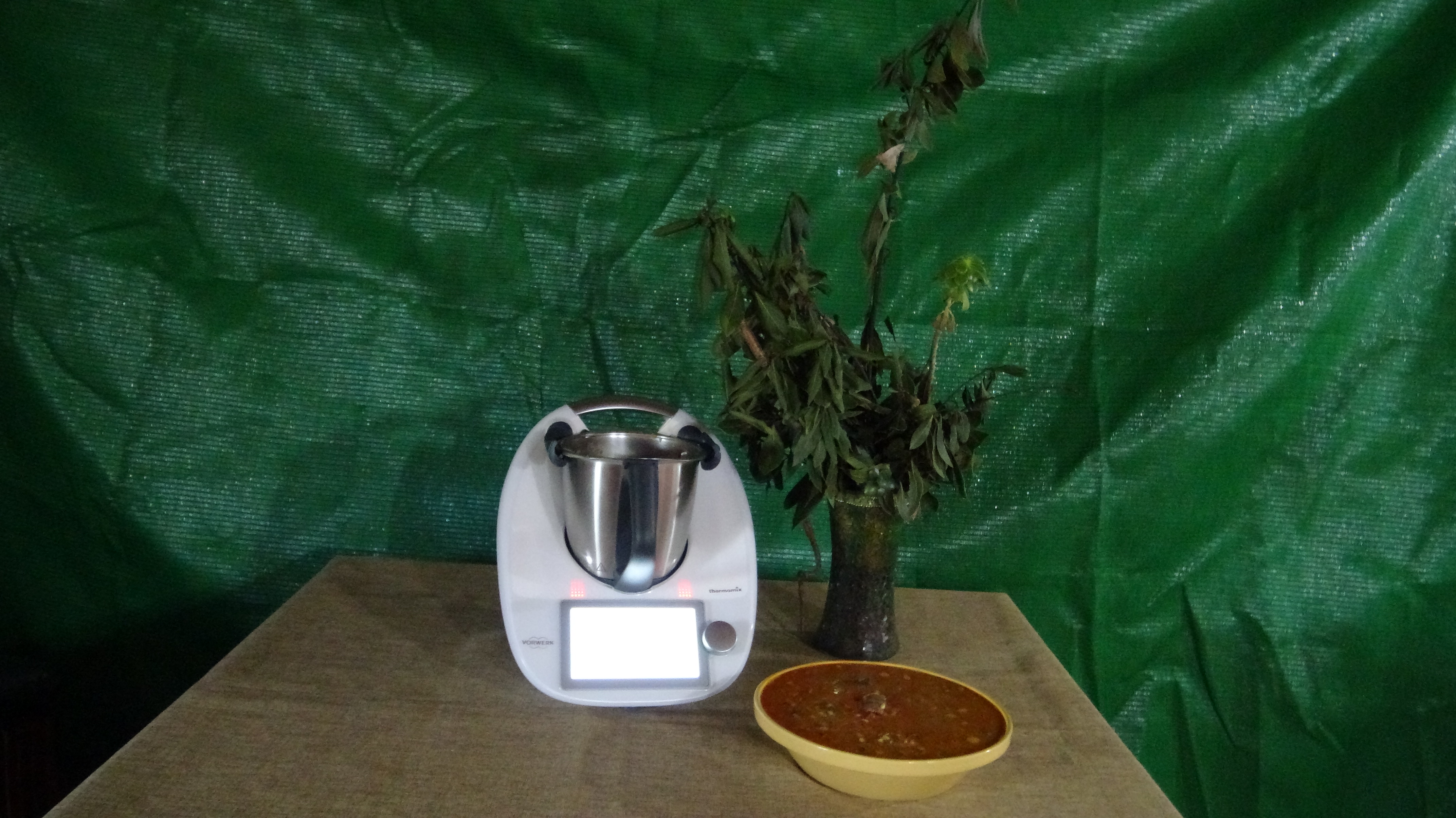 Añadir el chorizo y programar 30 min. a 100º con velocidad cuchara y giro inverso.