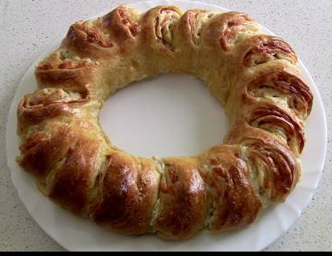 Hacer una rosca y cortar, como en porciones, pero sin llegar hasta el final y se separan con un pequeño giro para mostrar el interior