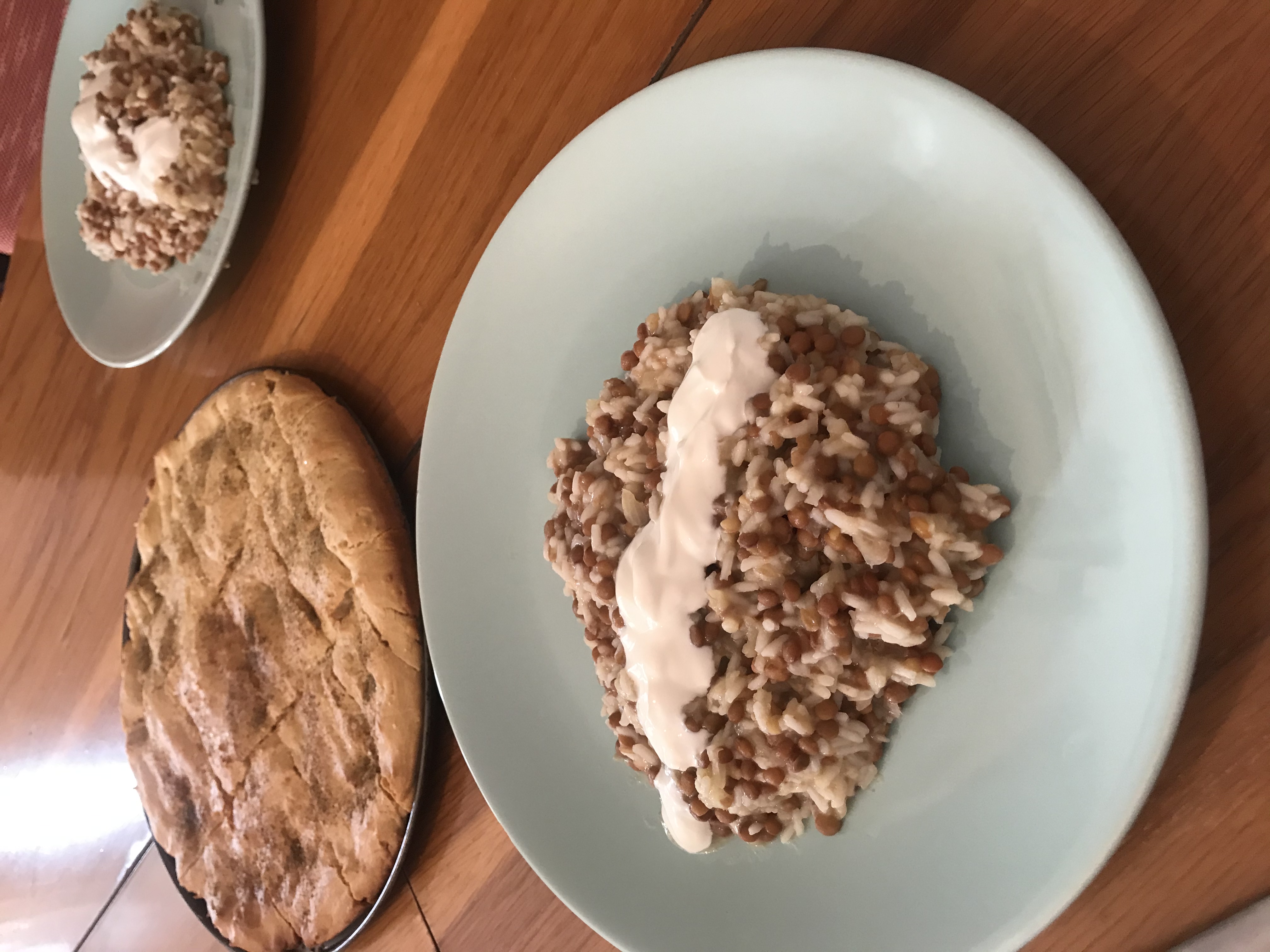 Pan especiado libanés y arroz con lentejas y cebolla frita en Thermomix Badajoz.