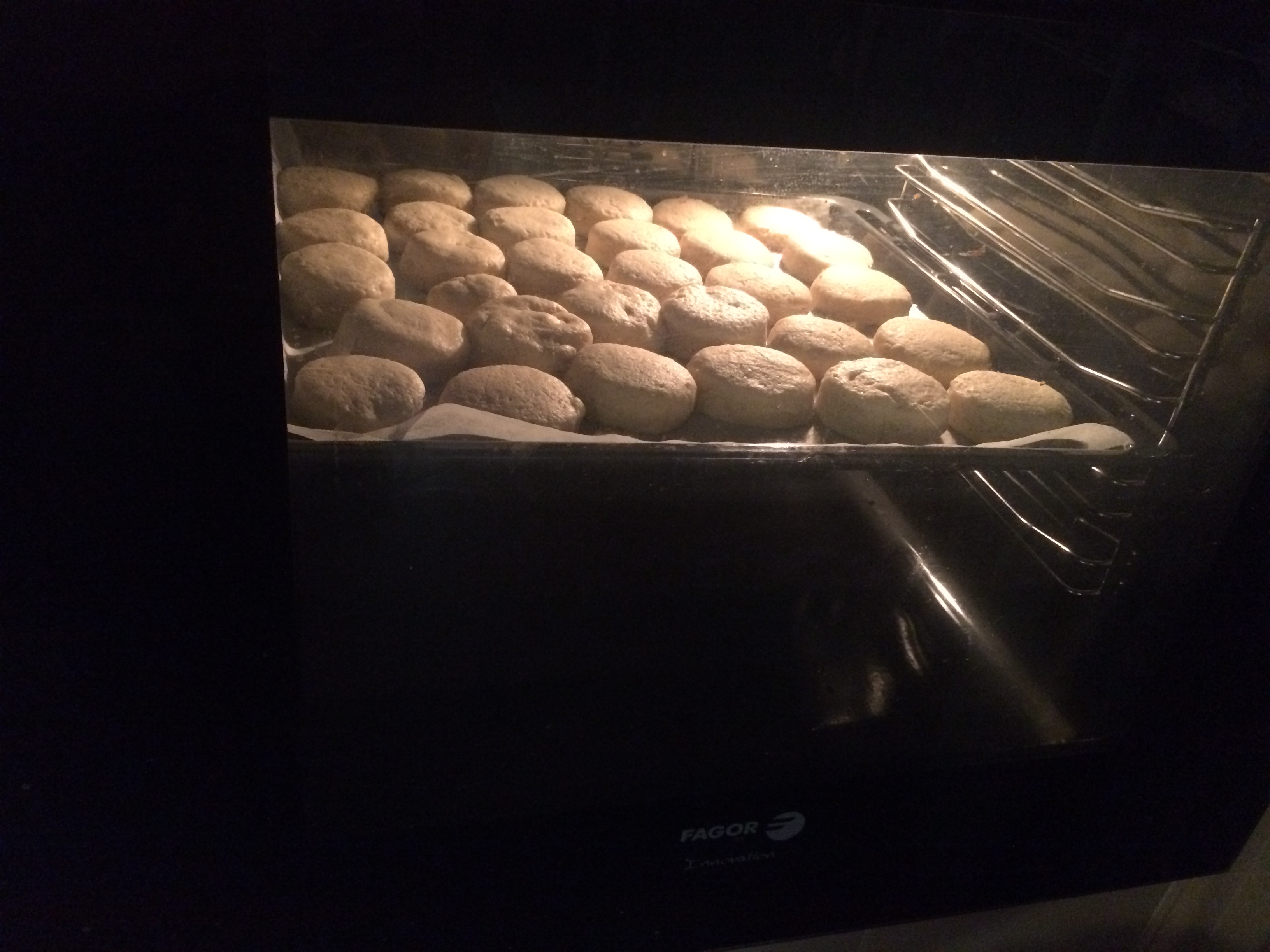 - Los iremos colocando en una bandeja forrada de papel de hornear y hornearemos 30-35 minutos a 170º, hasta que empiecen a dorarse, pero no demasiado.
