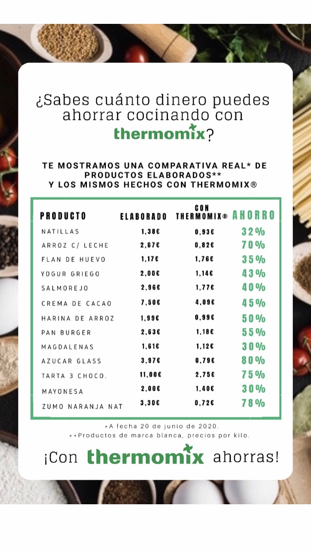 Aquí te dejo una foto donde podrás comprobar de manera clara cuánto ahorrarás con las elaboraciones más comunes con la misma: