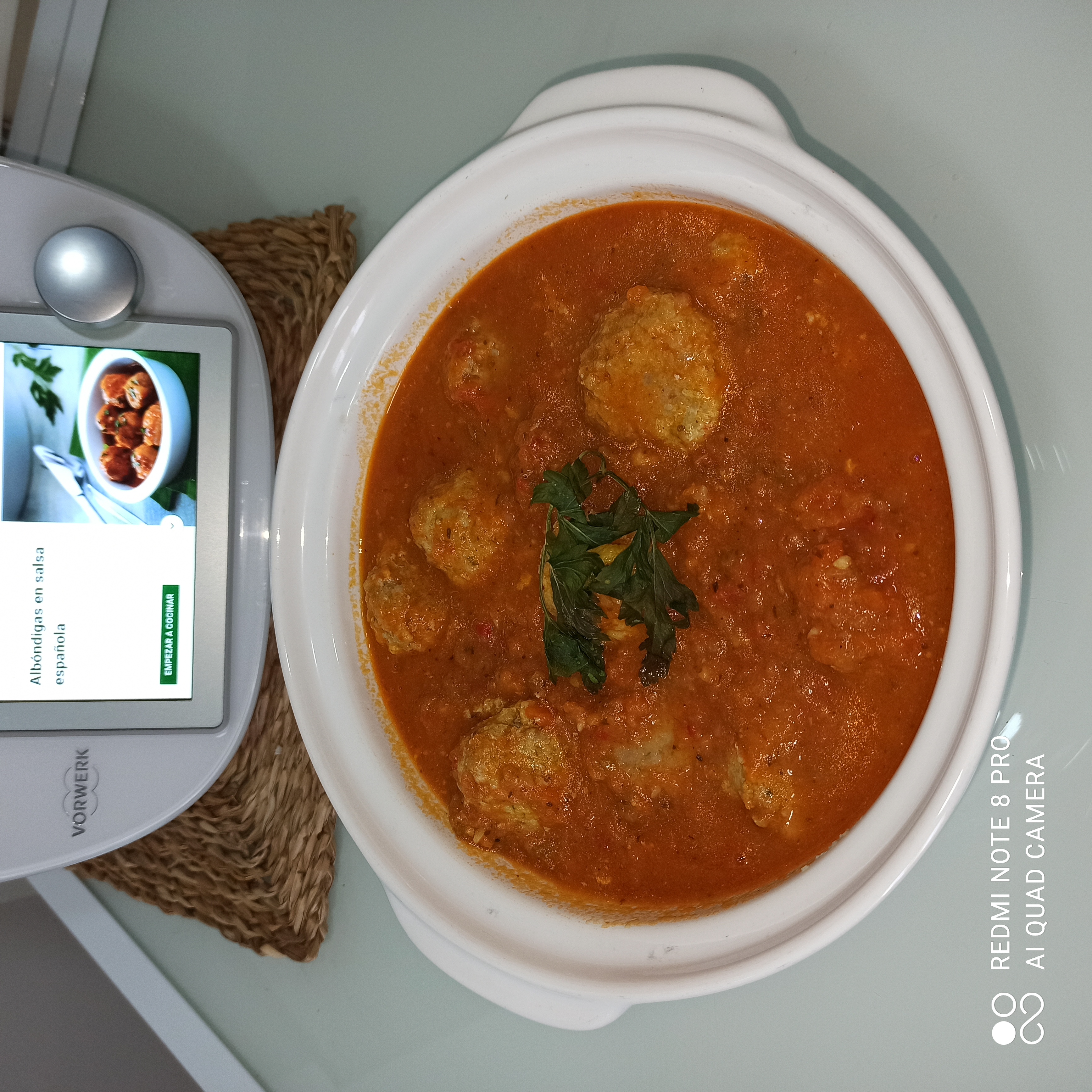 Albóndigas en salsa española, pero sin horno. Super esponjosas y tiernas.