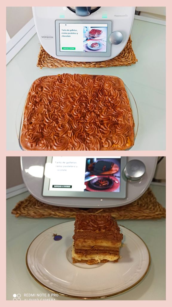 Tarta de galletas, crema pastelera y chocolate. Thermomix zafra
