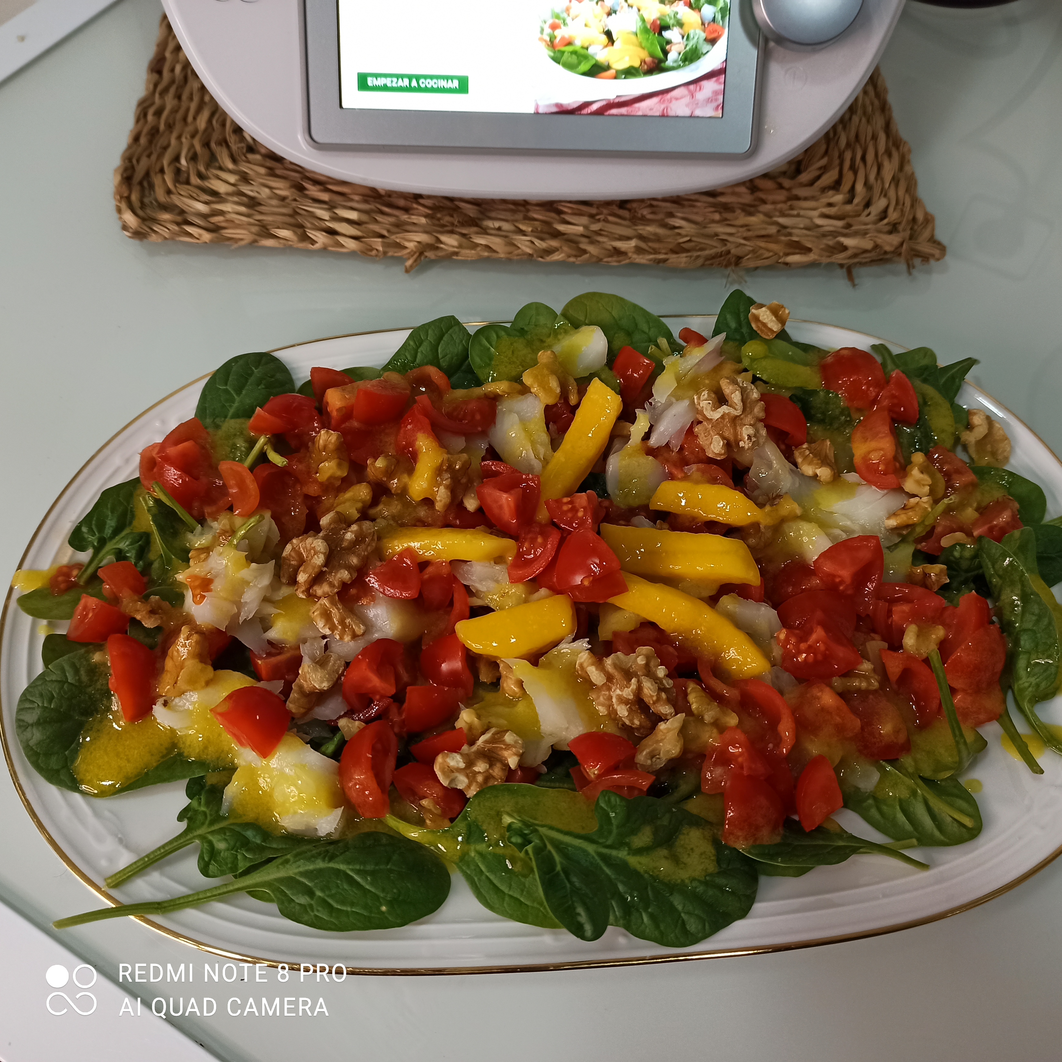 Ensalada de bacalao con vinagreta de mango.De Cookidoo