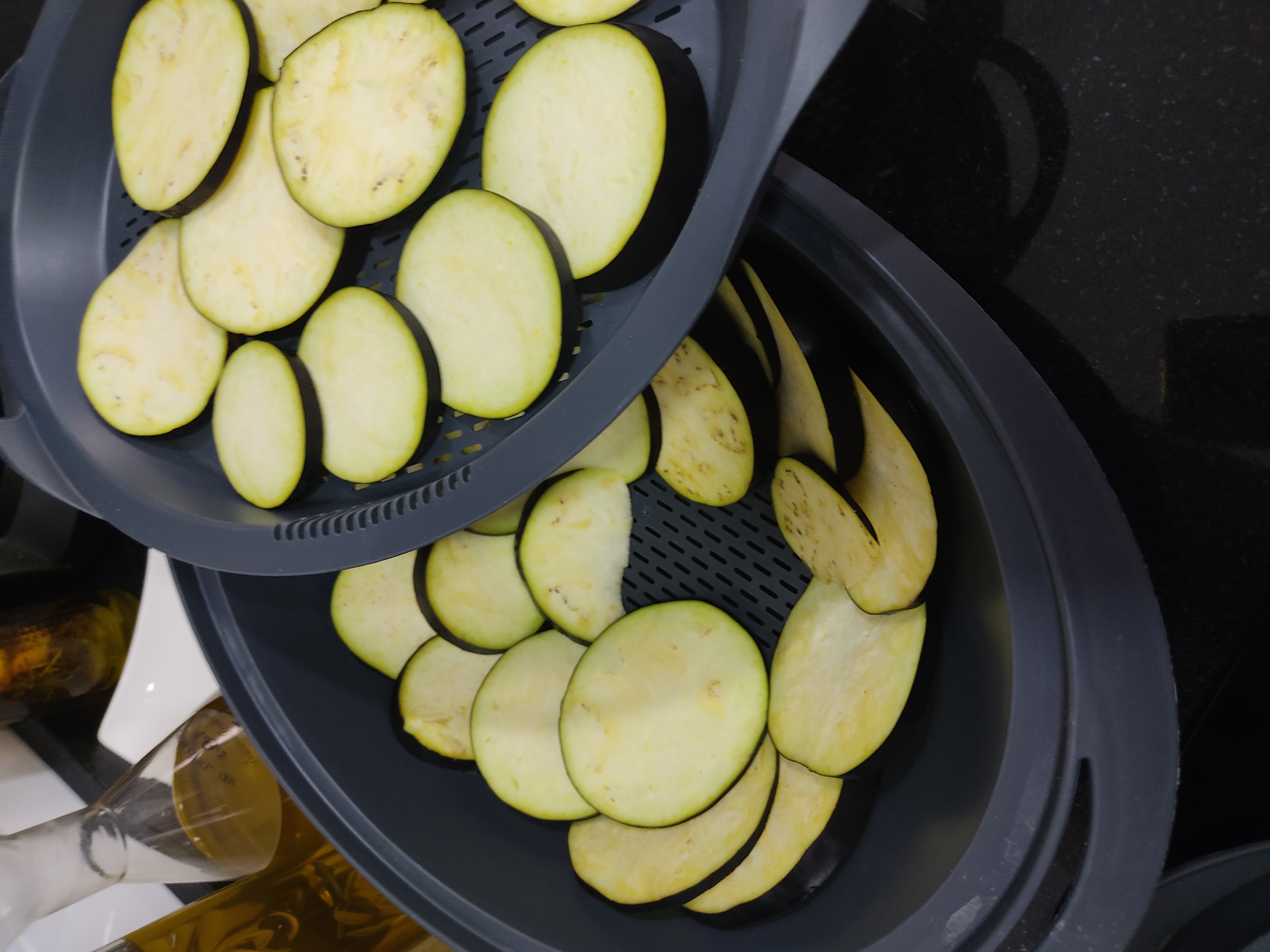 3 berenjenas cortadas en rodajas de 5 mm